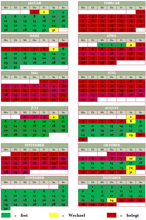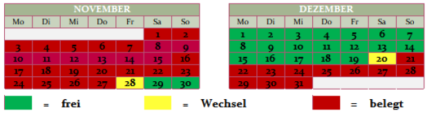 Im laufenden Kalenderjahr ist die Wohnung bis zum 28.11.2025 ausgebucht.